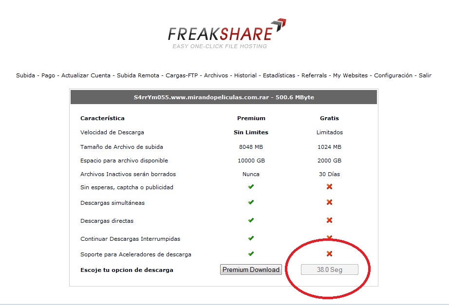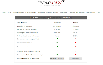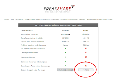 NOTA 2: Tambien existe la opcion PREMIUM, donde simplemente clickeando como muestra el paso 1, la pelicula empieza a descargar directamente a maxima velocidad a nuestra pc (sin esperas y sin escribir captchas). Pero esta opcion PREMIUM tiene un pequeño costo.